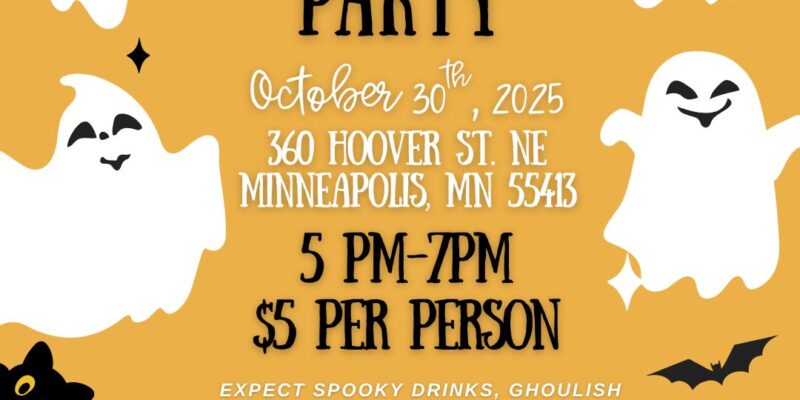 Join us on October 30th from 5pm-7pm for a spooktacular evening with all the best things: drinks, snacks, dancing, and our super cool staff and persons served!