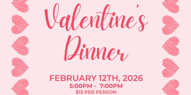 Join us on Thursday, February 12th for our Valentine’s Dinner! This enchanting evening is being catered by Marino’s Deli, with tickets at just $15 per person.